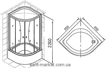 Гідробокс кутовий Eger HX-9820 95х95х226 з високим піддоном
