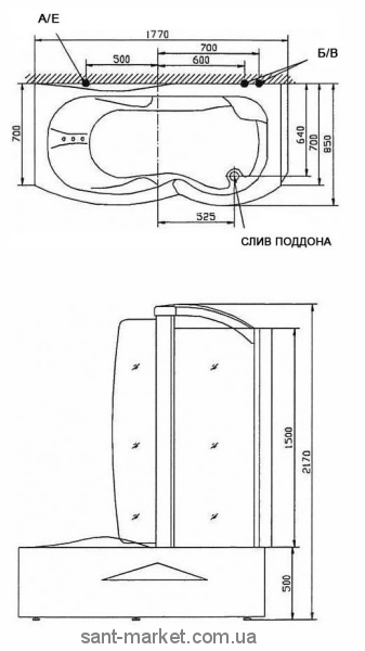 Гідробокс пристінний Appollo А - 0822 177х70х217 з ванною