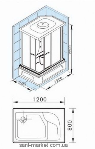 Гідробокс в правий кут Appollo TS-41W R 120х80х220 з високим піддоном