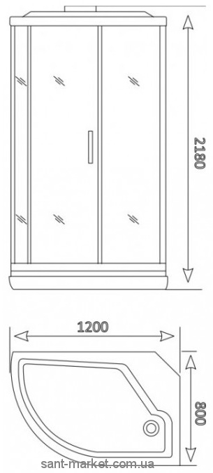 Гідробокс в правий кут Appollo TS-8020 120х80х218 з низьким піддоном