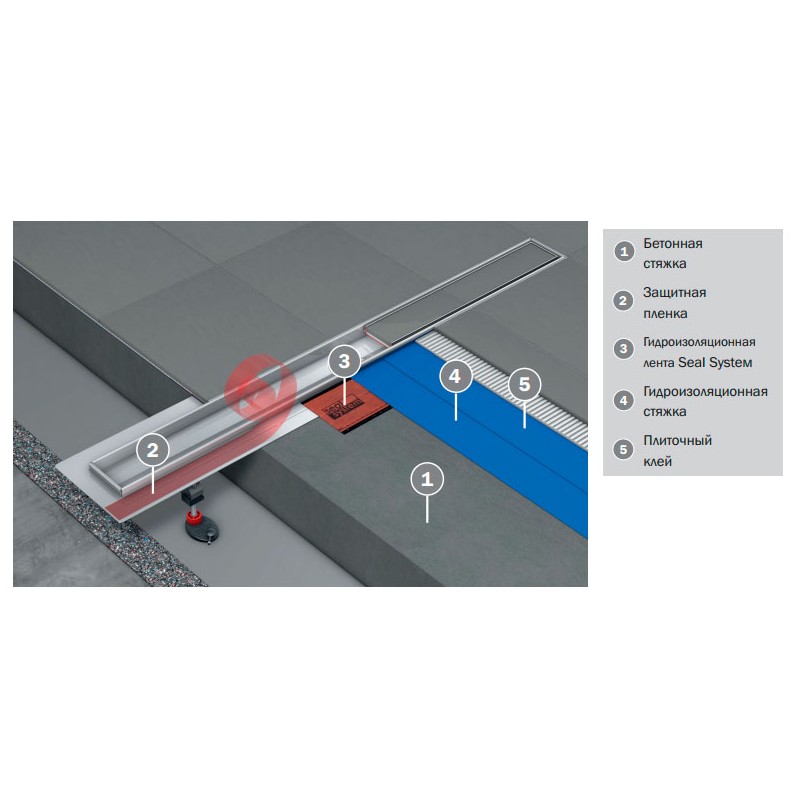 Спеціальна гідроізоляційна стрічка Seal System і гідроізоляційна манжета Seal System формують з'єднання між композиційним гідроізоляційним матеріалом і сантехнікою. Ці герметизирующие елементи є стандартизованим інтерфейсом для багатьох дренажних систем, які можна знайти на ринку, - як точкових трапів, так і дренажних каналів для душових.