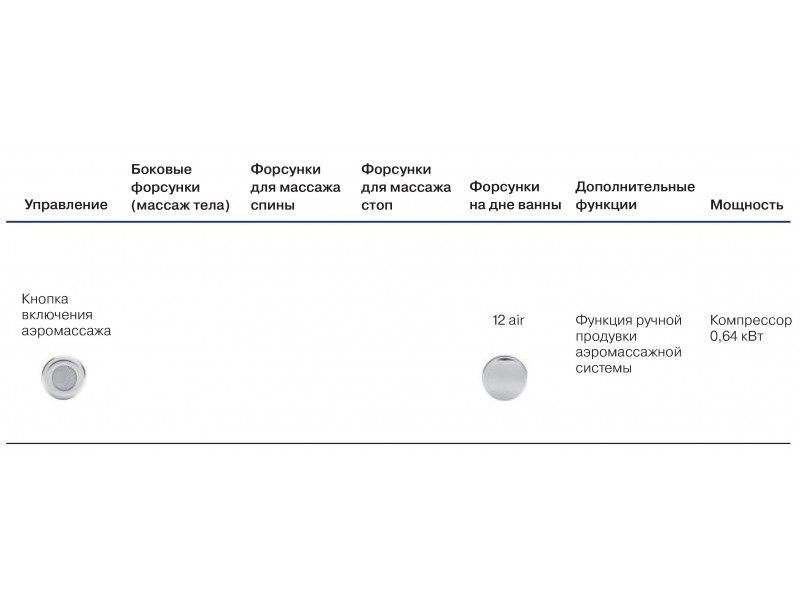 - У "аеро" форсунки подається повітря, що створює "ефект перлового купання" (велика кількість великих бульбашок повітря у воді)
