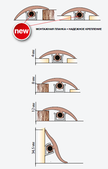 Конструкція ппрофіля дозволяє використовувати його на різнорівневих примикають поверхнях.