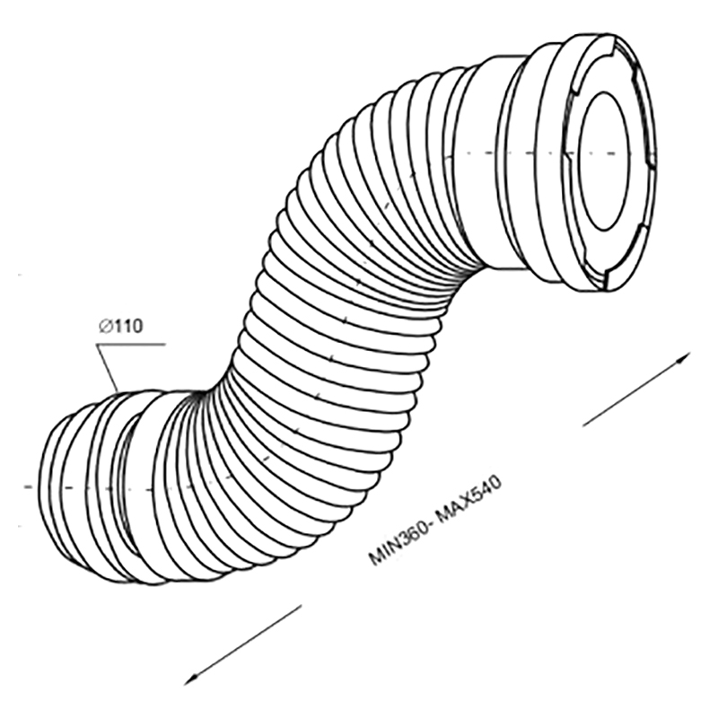 Гофра для унітазу Prevex D110 мм довжина 360-540 мм