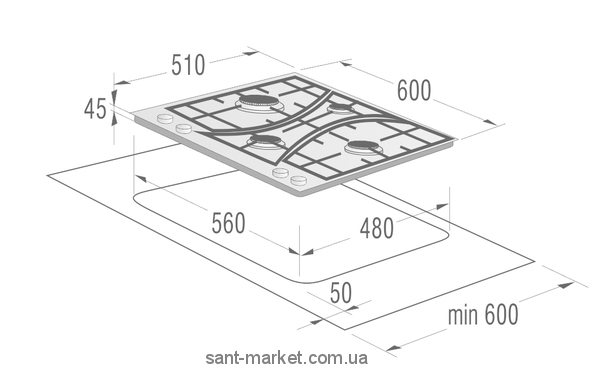 Розміри ніші для вбудовування (ШхГ) 4,5х56х48 см