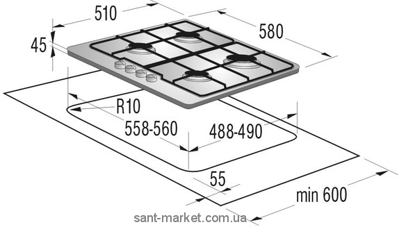 Gorenje Варильна поверхня газова G6N4BX