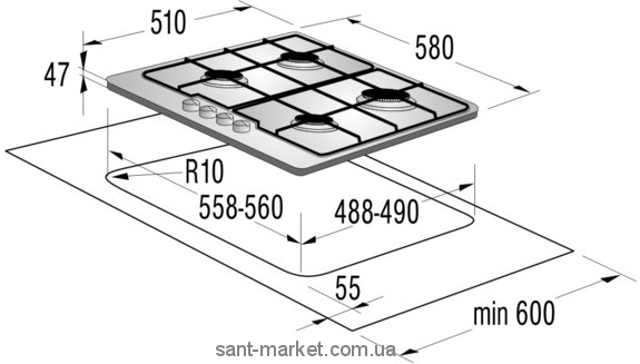 Розміри ніші для вбудовування (ШхГ) 4,7х56х49 см