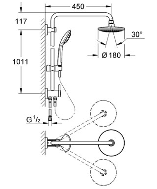 - включає: горизонтальний поворотний душовий кронштейн 450 мм