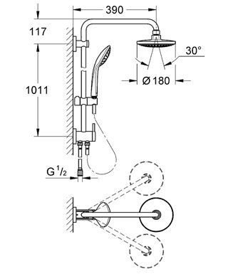 - включає: горизонтальний поворотний душовий кронштейн 390 мм