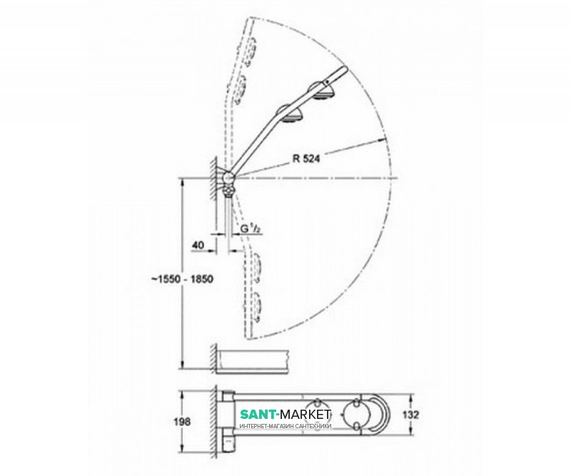 поворотна (для використання верхнього або бокового душа)