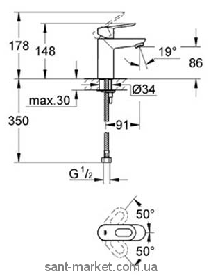 Grohe Bau Loop 23337000 змішувач одноважільний для раковини (без донного клапана)