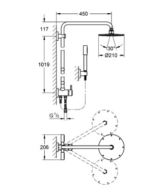 - включає: горизонтальний поворотний душовий кронштейн 450 мм