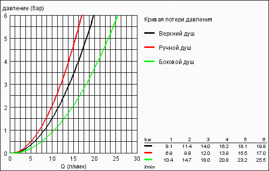 - мінімальний тиск води 10 л/хв (при окремому використанні верхнього, ручного або бічних душів)
