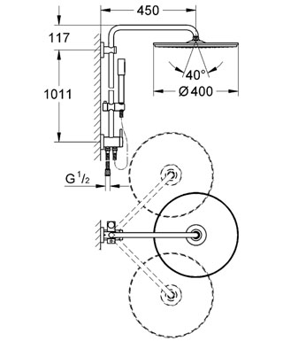 - включає: горизонтальний поворотний душовий кронштейн 450 мм