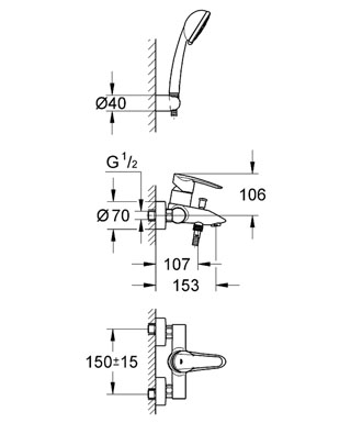 Grohe Wave Змішувач для ванни з душовим гарнітуром. DIY