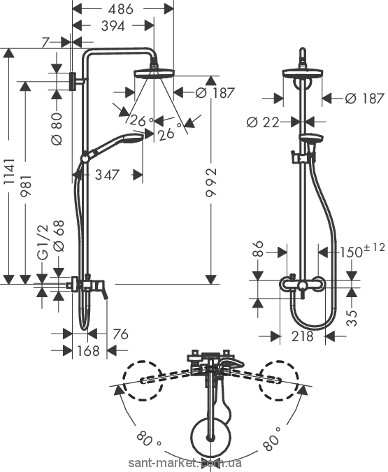 - Дивитися інші: Душові стійки для душа (без виливу) Hansgrohe