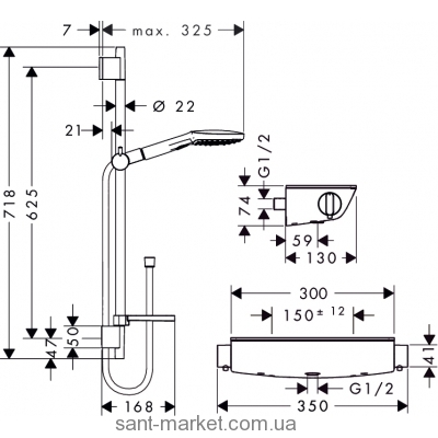 Hansgrohe ECOSTAT SELECT / RAINDANCE SELECT E 120 3JET / COMBI 0 65 М Душовий набір 27038000