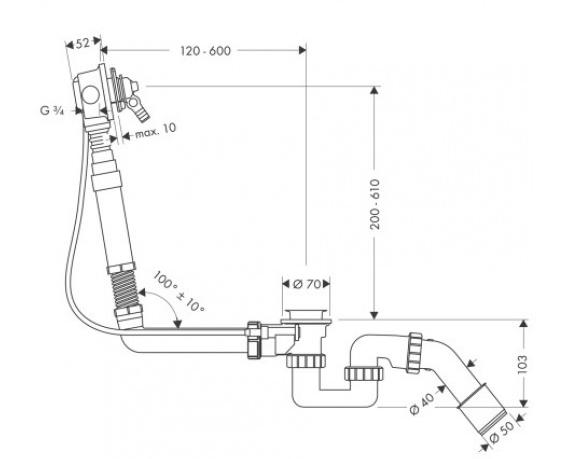 Hansgrohe Exafill S Сифон для для нестандартних ванн з наповненням через перелив СЧ 58126180