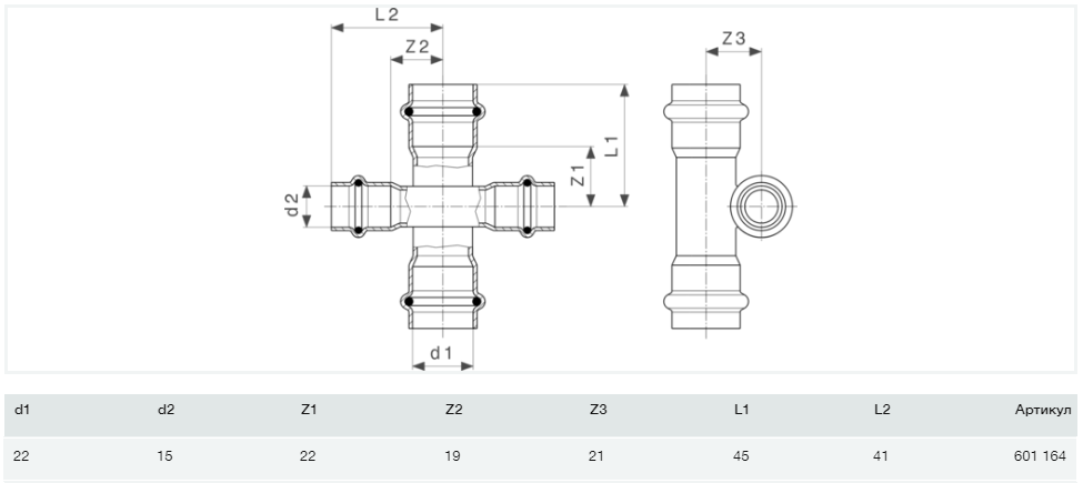 1) Хрестовина Viega Prestabo тисячі сто сорок вісім 22х15 нелегована сталь