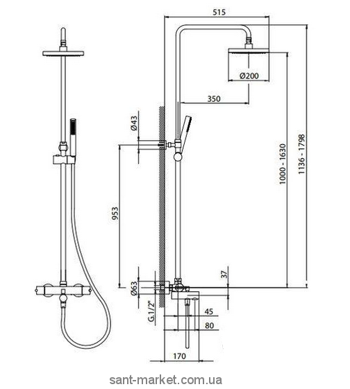 Huber Tratto Змішувач-термостат для душу з душовим комплектом TT.C83010.21