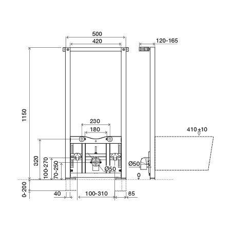 - Можливість регулювання щодо площини стіни в межах 80-190 мм