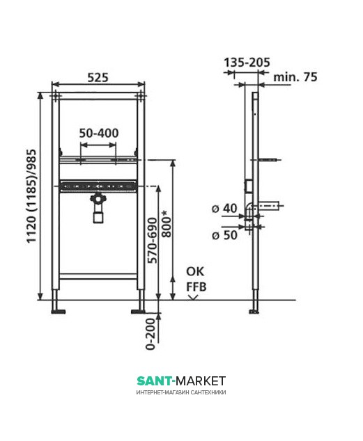 1120/525/75 можливість встановлення висоти 185 мм.