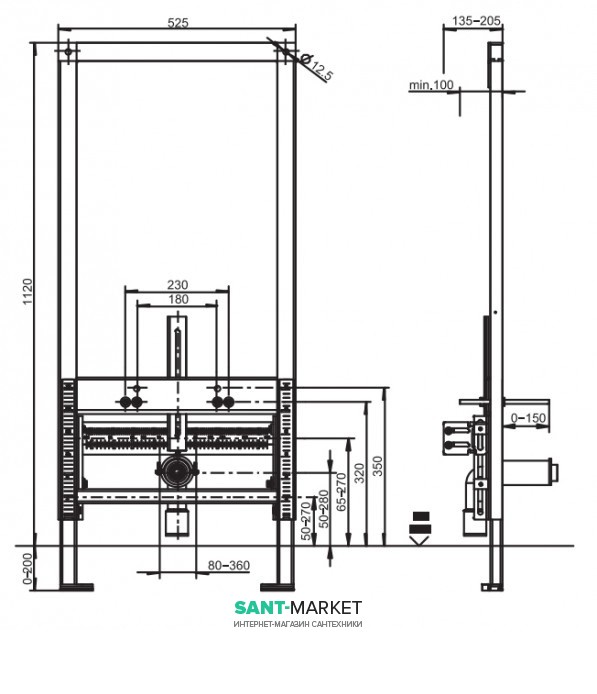 Інсталяція Sanit для прихованої установки в капітальній стіні, або в роздільній перегородці з наступним облицюванням гіпсокартонними панелями (повністю укомплектована кріпильними елементами). Стіни кріплення поставляються окремо.