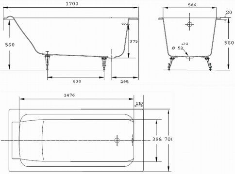 Назва-ванна чавунна JACOB DELAFON PARALLEL 170+E2948-00