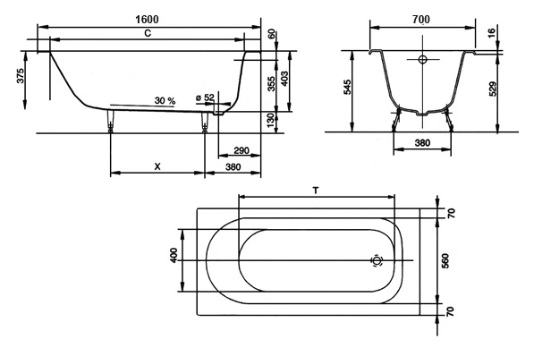 Jacob Delafon Soissons ванна чавунна 160 * 70 без ручок E2931-00