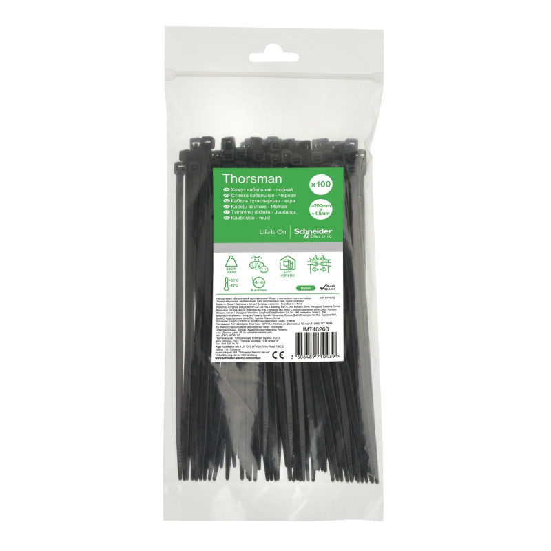Кабельна стяжка Schneider Electric Thorsman 200х4, 8 мм чорний 100 шт IMT46263