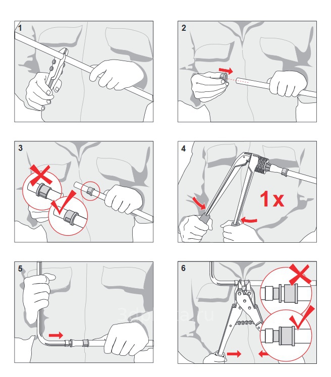 Герметичність з'єднання досягається за рахунок «ефекту пам'яті» матеріалу труби - зшитого поліетилену. Після запресовування з'єднаннястає абсолютно герметичним, тому що матеріал труби починає стискатися і труба прагне прийняти початкову форму.