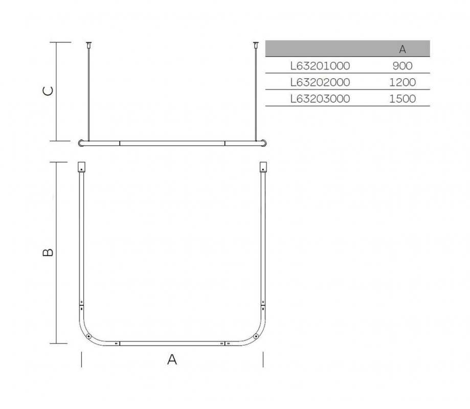 1) Карниз для душової штори Kolo Lehnen Concept 3-сторонній