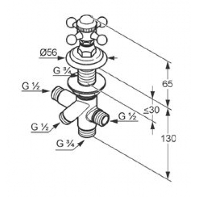 Перемикач на 2 положення DN 15, обробка - латунь.