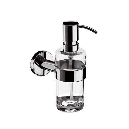 Чудовий дозатор для рідкого мила Kludi New-Wawes 122100100 має прозору скляну колбу та гарний настінний тримач з металу.