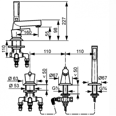 KLUDI - Монтажний блок комплект для прихованого монтажу для змішувачів на борт ванни на 3 отвори