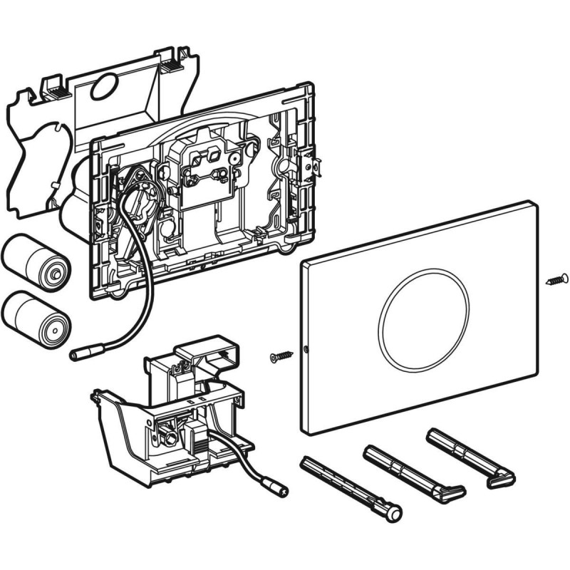 Управління унітазом Geberit з електронним управлінням змиву, живлення від батарейок, подвійний змив, змивна клавіша Sigma10, автоматична/безконтактна, що пригвинчується