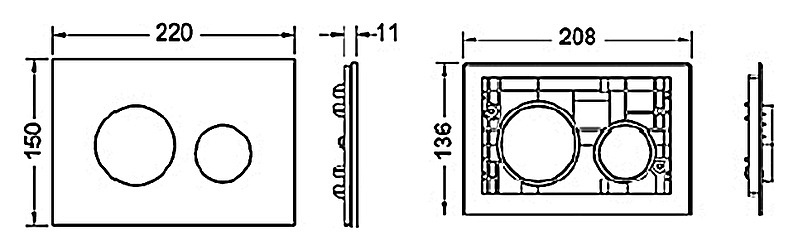 Клавіші TECEloop для панелі змиву унітазу, призначені для використання в поєднанні з передньою панеллю модульної системи TECEloop (немає в комплекті). Рекомендується фронтальна або верхня установка. Кнопки змиву унітазу TECEloop для системи з подвійним змивом, виконані з високоякісного пластику.