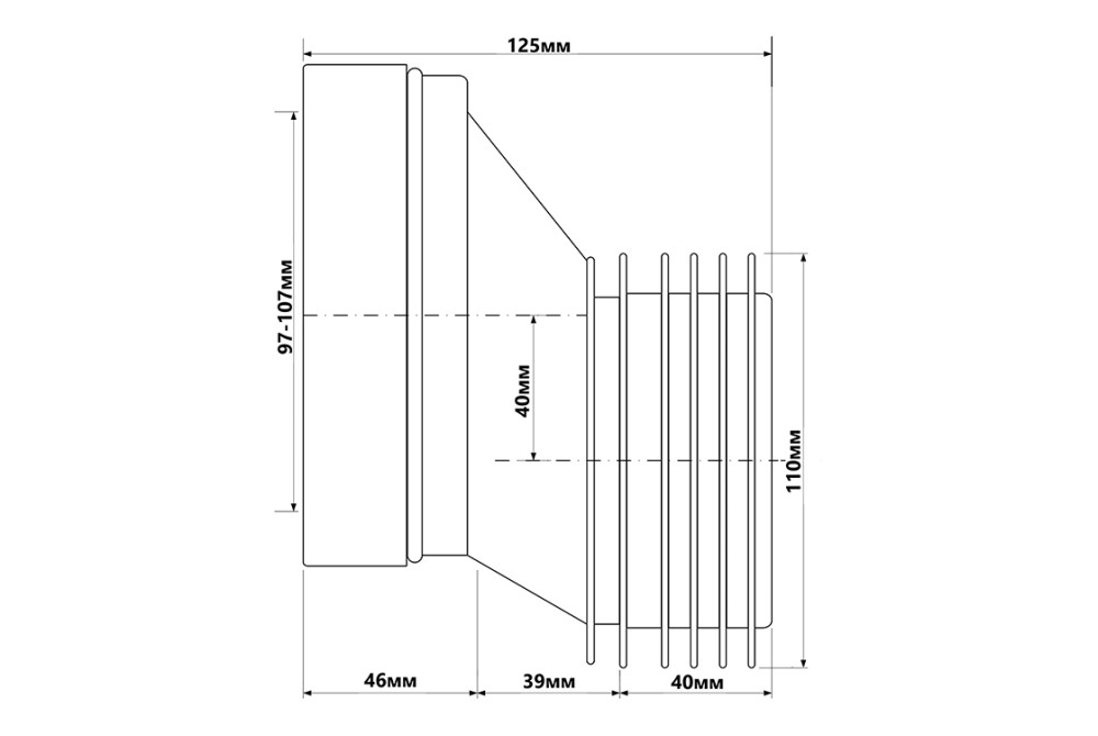 Коліно для унітазу McAlpine 40 мм з ущільнювачем L-125 мм поліпропілен біле