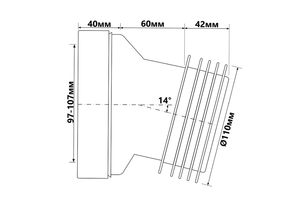 Коліно для унітазу McAlpine під кутом 14° з ущільнювачем L-125 мм білий поліпропілен