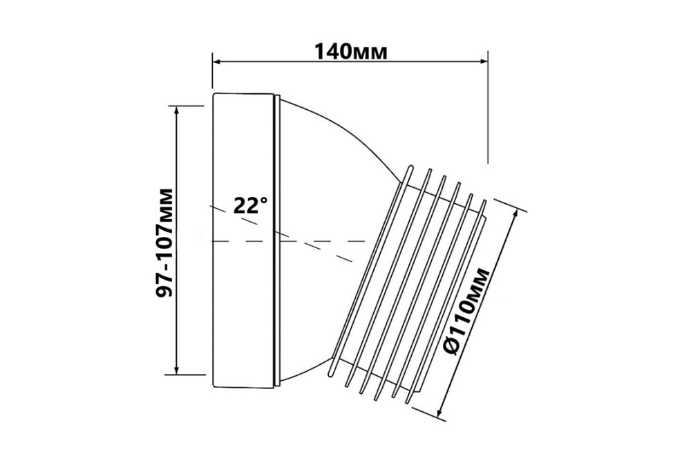 Коліно для унітазу McAlpine під кутом 22° із ущільнювачем L-125 мм поліпропілен білий HC39-22