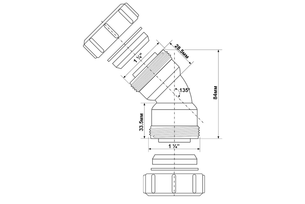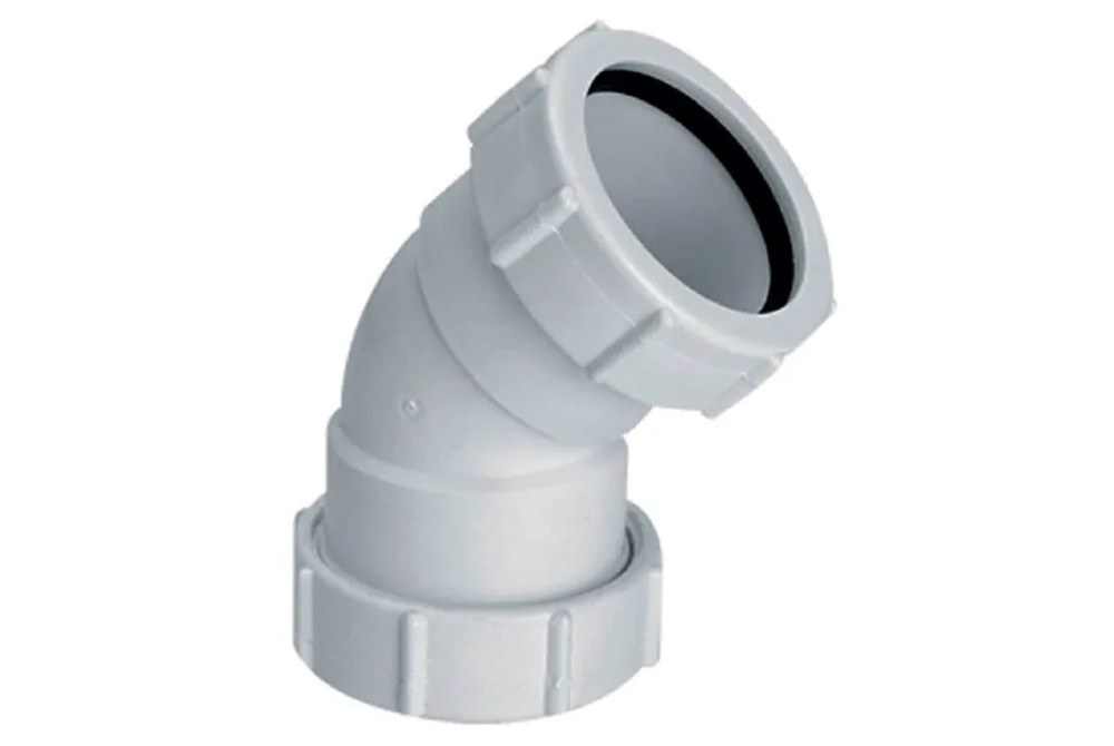 Коліно McAlpine 45° з гайками d32 мм поліпропілен білий 32B-WH