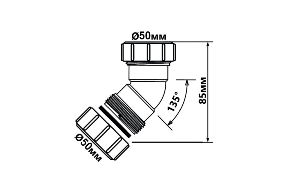 Коліно McAlpine 45° з гайками d50 мм білий поліпропілен
