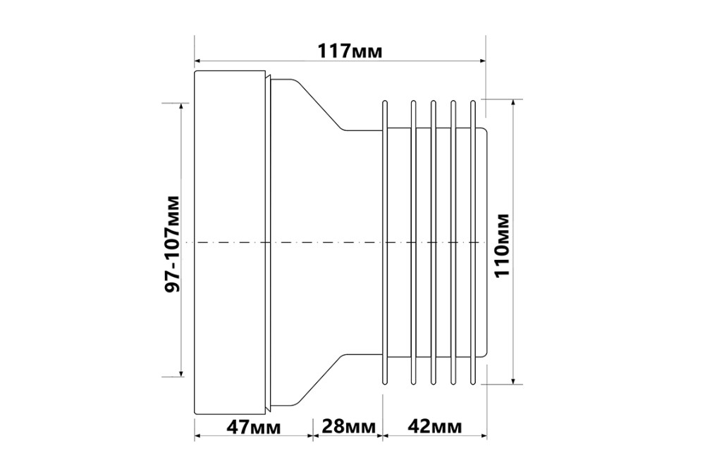 Коліно-підключення до унітазу McAlpine L-117 мм із ущільнювачем поліпропілен білий WC-CON1