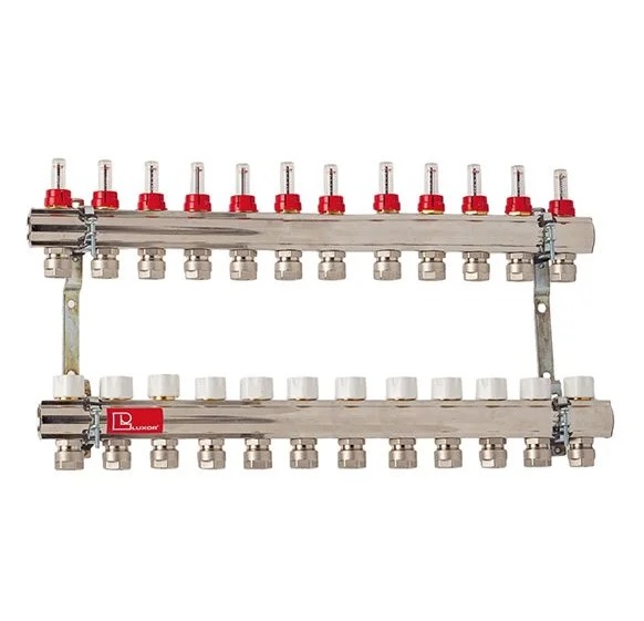 1) Колектор для систем підлогового опалення Luxor 12 контурів з витратоміром і термоклапаном