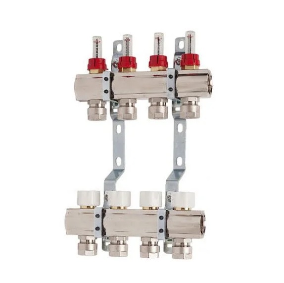 1) Колектор для систем підлогового опалення Luxor 4 контура з відсікачем і термоклапаном