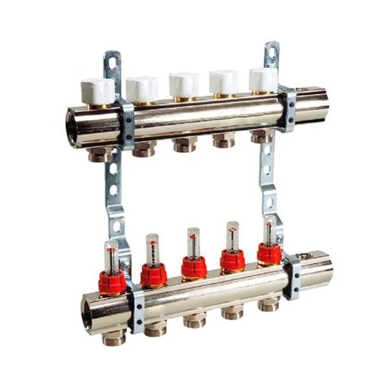 1) Колектор для систем підлогового опалення Luxor 5 контурів з відсікачем і термоклапаном