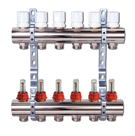 1) Колектор для систем підлогового опалення Luxor 6 контурів з відсікачем і термоклапаном