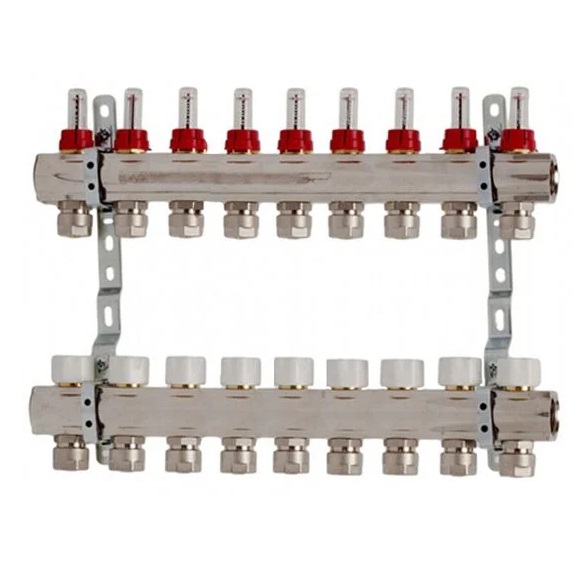 1) Колектор для систем підлогового опалення Luxor 9 контурів з відсікачем і термоклапаном