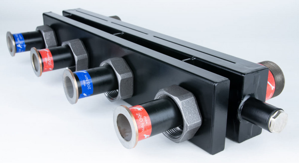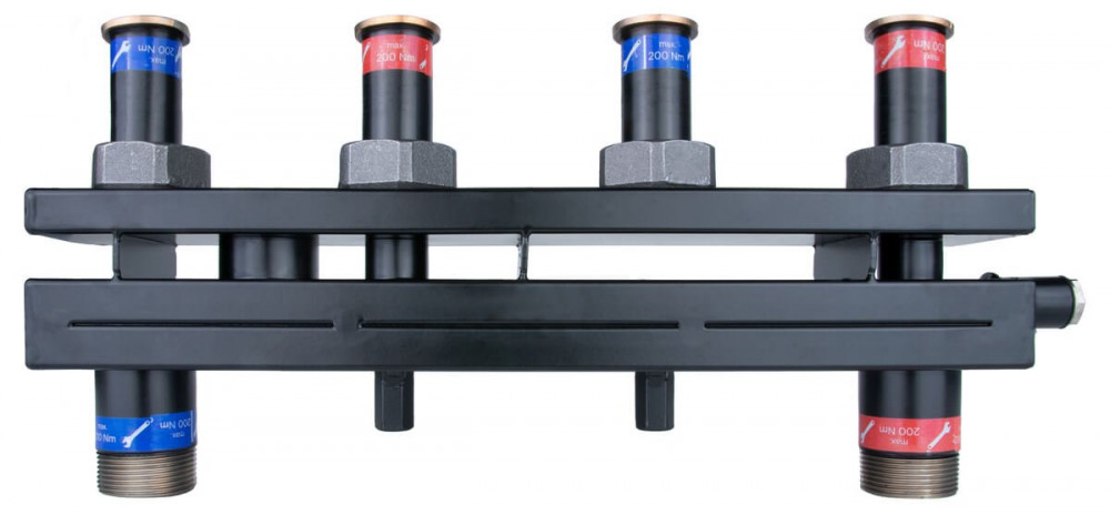 КолекториKSV оснащені двома подаючими та зворотними з'єднаннями з боку джерела тепла та кілька пар з'єднань з боку системи. З точки зору інтервалу та розміру з'єднання, колектори підходять безпосередньо до насосних груп PrimoTherm 180-1 DN25 та 180-2 DN25 та PrimoTherm До 180-1 DN25 та До 180-2 DN25.