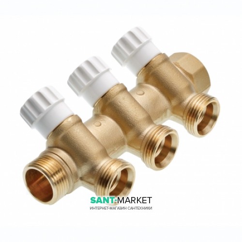 - Запірний колектор з коррозійнностійких латуні (CW 617 N) для систем водопостачання та опалення